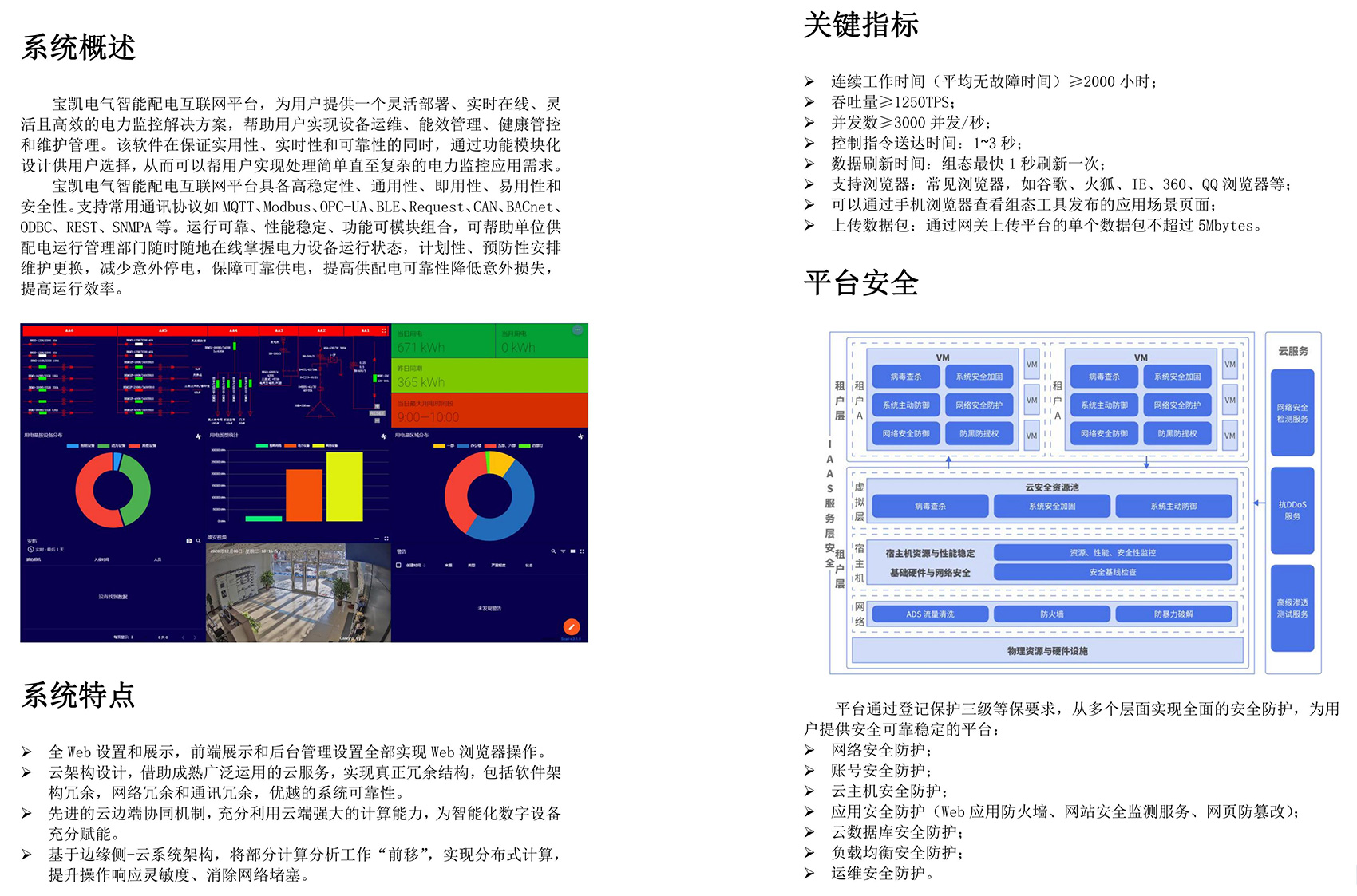 寶凱電氣智能配電監(jiān)控系統(tǒng)以計(jì)算機(jī)、通訊設(shè)備、測控單元為基本工具,可連接智能電力監(jiān)控儀表、帶有智能接口的低壓斷路器及其他智能設(shè)備,實(shí)現(xiàn)遙控、遙測、遙信功能(根據(jù)設(shè)備及用戶需求同時(shí)可實(shí)現(xiàn)遙調(diào)功能),對系統(tǒng)各種運(yùn)行開關(guān)量狀態(tài)和電量參數(shù)進(jìn)行實(shí)時(shí)采集和顯示,可完整地掌握變配電系統(tǒng)的實(shí)時(shí)運(yùn)行狀態(tài),及時(shí)發(fā)現(xiàn)故障并做出相應(yīng)的決策和處理,保護(hù)一次設(shè)備,同時(shí)可以使值班管理人員根據(jù)變配電系統(tǒng)的運(yùn)行情況進(jìn)行負(fù)荷分析、合理調(diào)度,實(shí)現(xiàn)對變配電系統(tǒng)的現(xiàn)代化運(yùn)行管理。